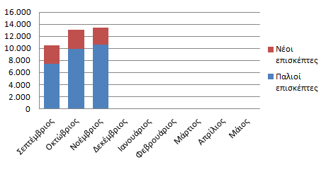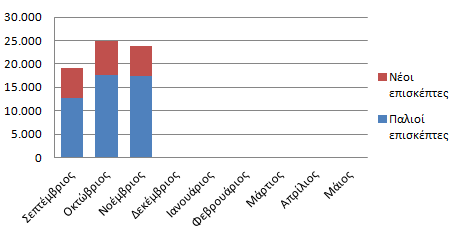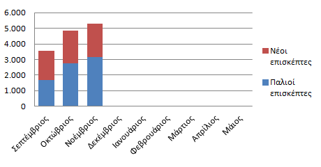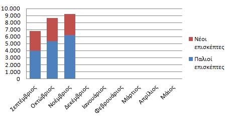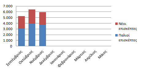 Αθροιστικό ραβδόγραμμα παλαιών και νέων επισκεπτών για το βοήθημα της Φυσικής από την αρχή της σχολικής χρονιάς μέχρι τον μήνα Νοέμβριο 2014.