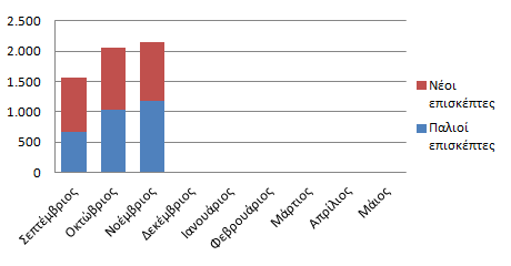 Αθροιστικό ραβδόγραμμα παλαιών και νέων επισκεπτών για το βοήθημα της Βιολογίας από την αρχή της σχολικής χρονιάς μέχρι τον μήνα Νοέμβριο 2014.